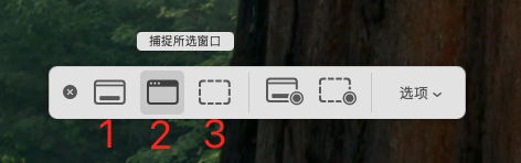 这组mac快捷键专门用于调出所有Mac截图工具菜单。如以上图片所示:1是全屏截图,2是窗口截图,3是区域截图。