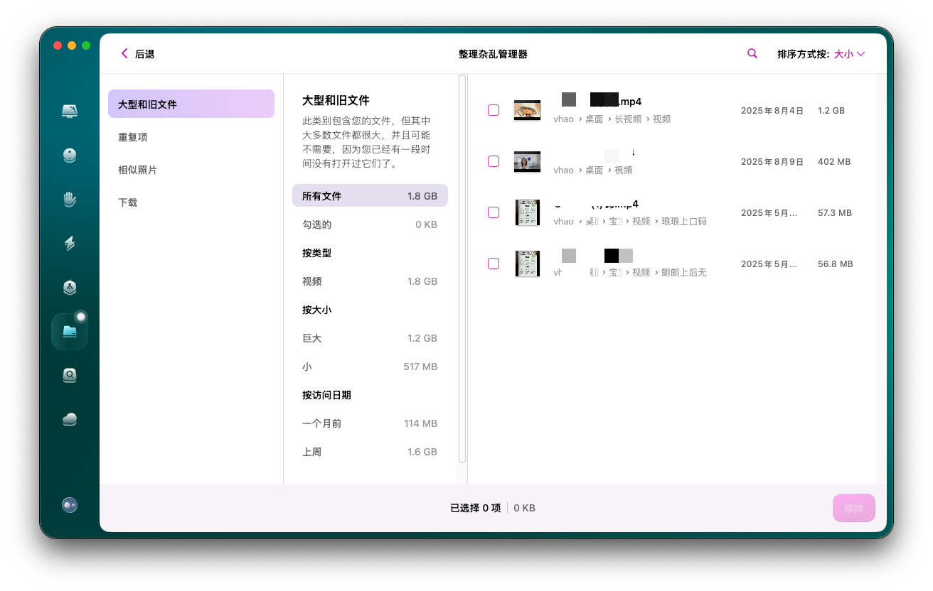 整理杂乱:CleanMyMac 的 “整理杂乱” 可快速识别并清理重复文件与相似图片,按类型 / 大小 / 时间筛选,支持预览后一键移除,帮你安全释放磁盘空间、提升文件管理效率。