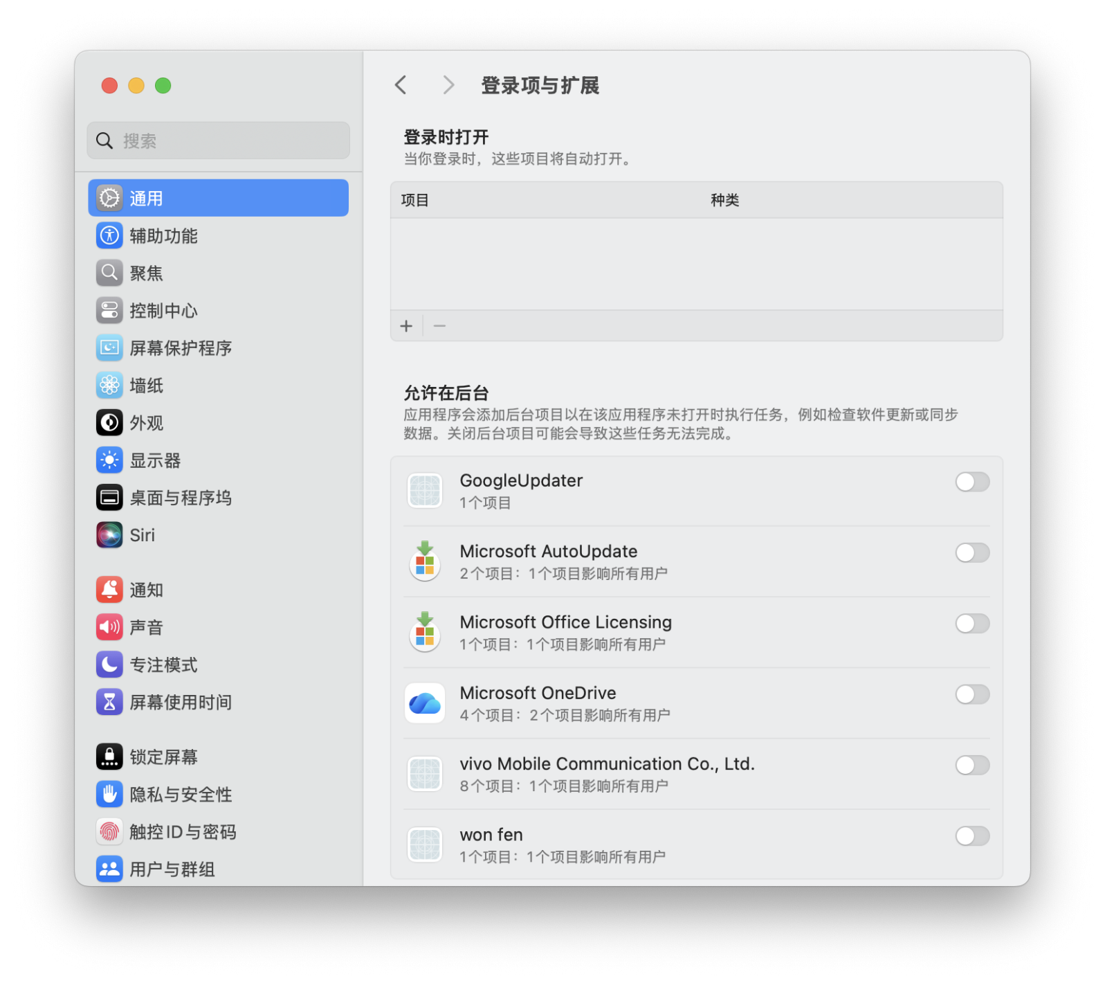 MacBook Neo新机默认会启动很多后台服务、自启软件,哪怕锁屏不用,这些进程也在偷偷耗电、加剧电池损耗。手动关闭无用自启项,既能省电,又能减少电池负荷。