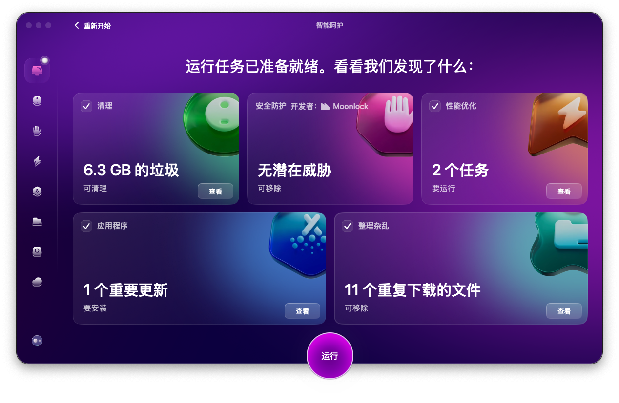 1. 每周用CleanMyMac优化1次,清理垃圾、释放内存,从根源上避免卡顿,苹果电脑卡顿反应慢怎么办?长期维护才是关键;